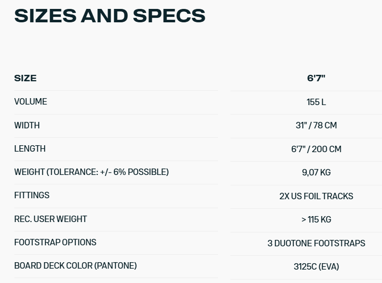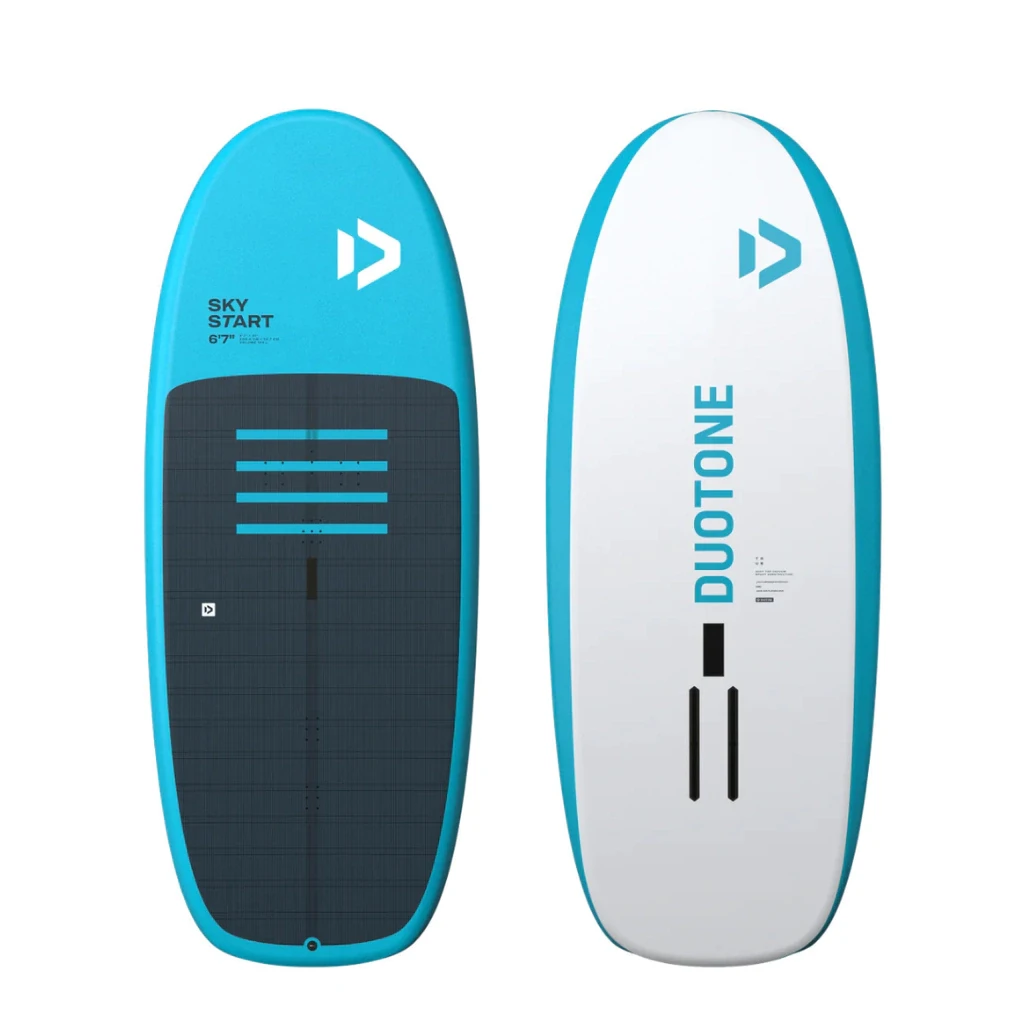 Con una longitud de 6'7", un ancho de 31 pulgadas y un volumen de 155 litros, el nuevo outline de la Sky Start ofrece una superficie estable y segura para los que dan sus primeros pasos en Wing Foil, desde ponerse de rodillas, encontrar la postura o emprender sus primeros vuelos. Para los que ya se sienten cómodos volando y están practicando sus primeras trasluchadas y viradas, la Sky Start, al ser compacta, aún ofrece un vuelo emocionante y divertido para progresar.